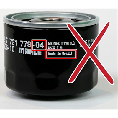 Choć w zasadzie obstawiamy, że większość motocykli z tych roczników jest już po wymianie filtra, warto się upewnić. Nie słyszeliśmy o takich przypadkach w Polsce, ale były one zgłaszane we Francji, w Niemczech, Słowenii i Norwegii. Podczas szybkiej jazdy filtr może się poluzować powyżej 12 500 obr/min i spowodować wyciek. Wadliwy numer i pochodzenie filtra na zdjęciu poniżej: