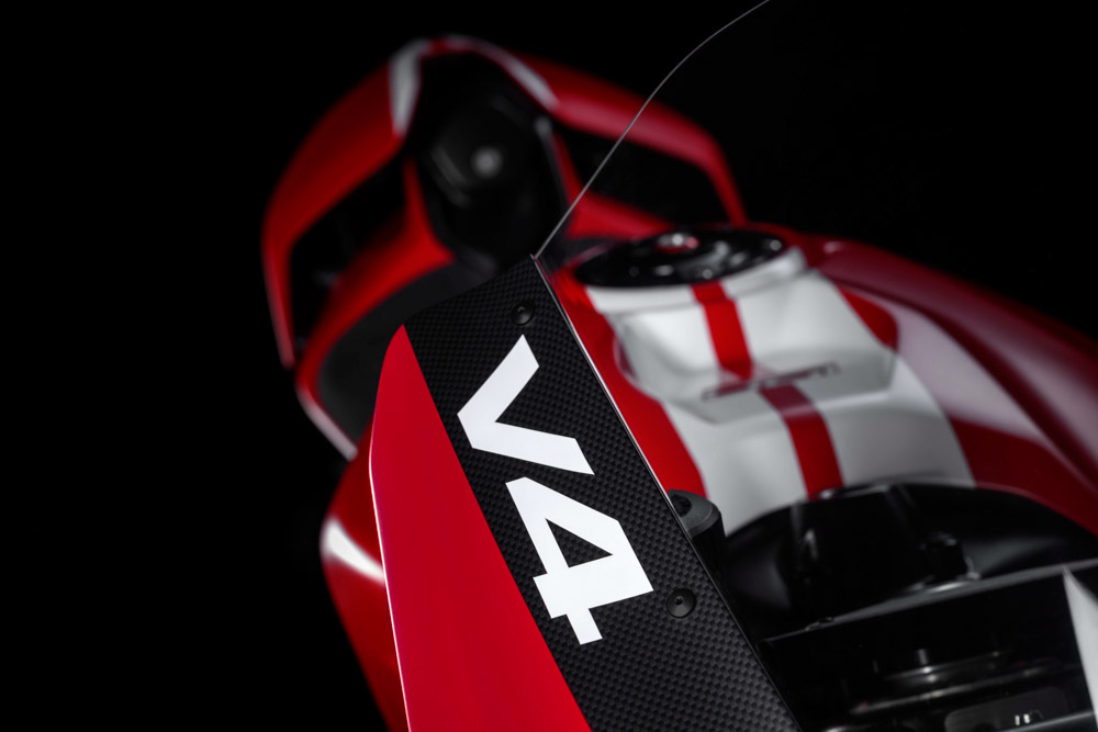 Limotowana wersja limitowanej wersji Superleggera – ograniczona do 100 egzemplarzy, Superleggera V4 Centenario Tricolore to hołd Ducati 750 F1 Endurance Racing, czyli ostatniemu wielkiemu dwuzaworowemu L2.