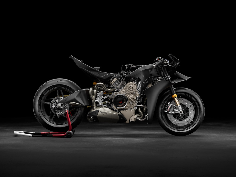 Silnik jest o 3,6 kg lżejszy od jednostki o pojemności 1103 cm³ w modelu Panigale V4 z suchym sprzęgłem. Zmniejszenie masy wynika z użycia tytanu, lżejszych śrub oraz przeprojektowanych elementów wewnętrznych, co pozwoliło zmniejszyć masy obrotowe.